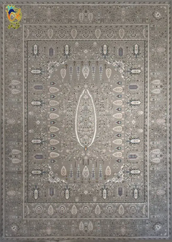 فرش ماشینی افرند 1200 شانه کد 121503 زمینه نقره ای پر رنگ